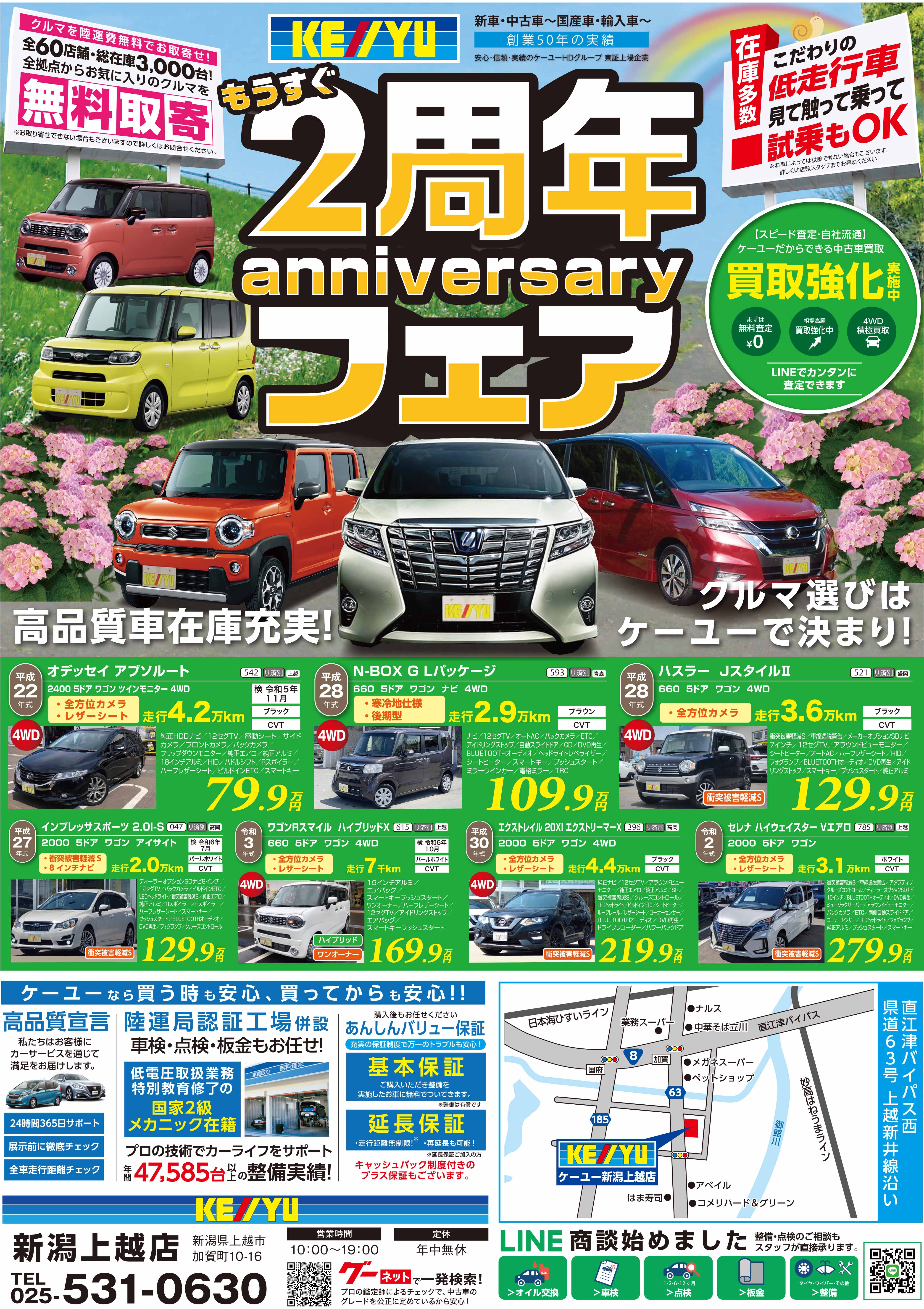 新潟県の上越エリアにオープン!! 【昭和47年創業 東証上場企業グループ】グループ在庫常時3500台以上